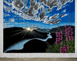 Aside from dealing with finicky substrates, Matty says it can also be challenging on the body to paint murals. “You’re painting these big pieces, doing long swaths with your arms and climbing up and down ladders; it’s physical work and I’m beat afterwards,” he says, but then qualifies that it’s totally worth it. “The murals all over Castlegar are a compliment to Sculpture Walk and prove this is a really artistic city.”